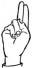 На ћирилици написано ДАМЈАН РАЛИЋ састоји се из 11 слова [?]. Исписано ћириличном једноручном азбуком за глувонеме: